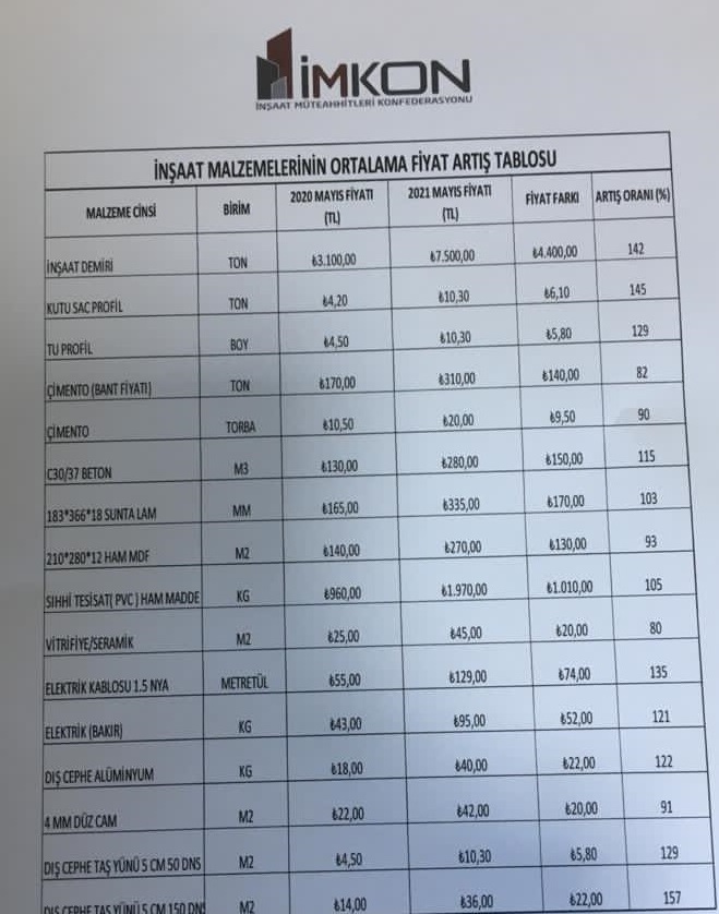 Türkiye’de müteahhitlik sektörüyle ilgili en büyük çatı kuruluşu Ankara merkezli İnşaat Müteahhitleri Konfederasyonu. Üstyapı müteahhitlerin üye olduğu İMKON’un 51 alt birlik ve 120 bin üyesi bulunuyor. Üstyapı müteahhitleri bu yüzden İMKON verilerine göre artışların daha net şekilde açıklandığını dile getiriyor.