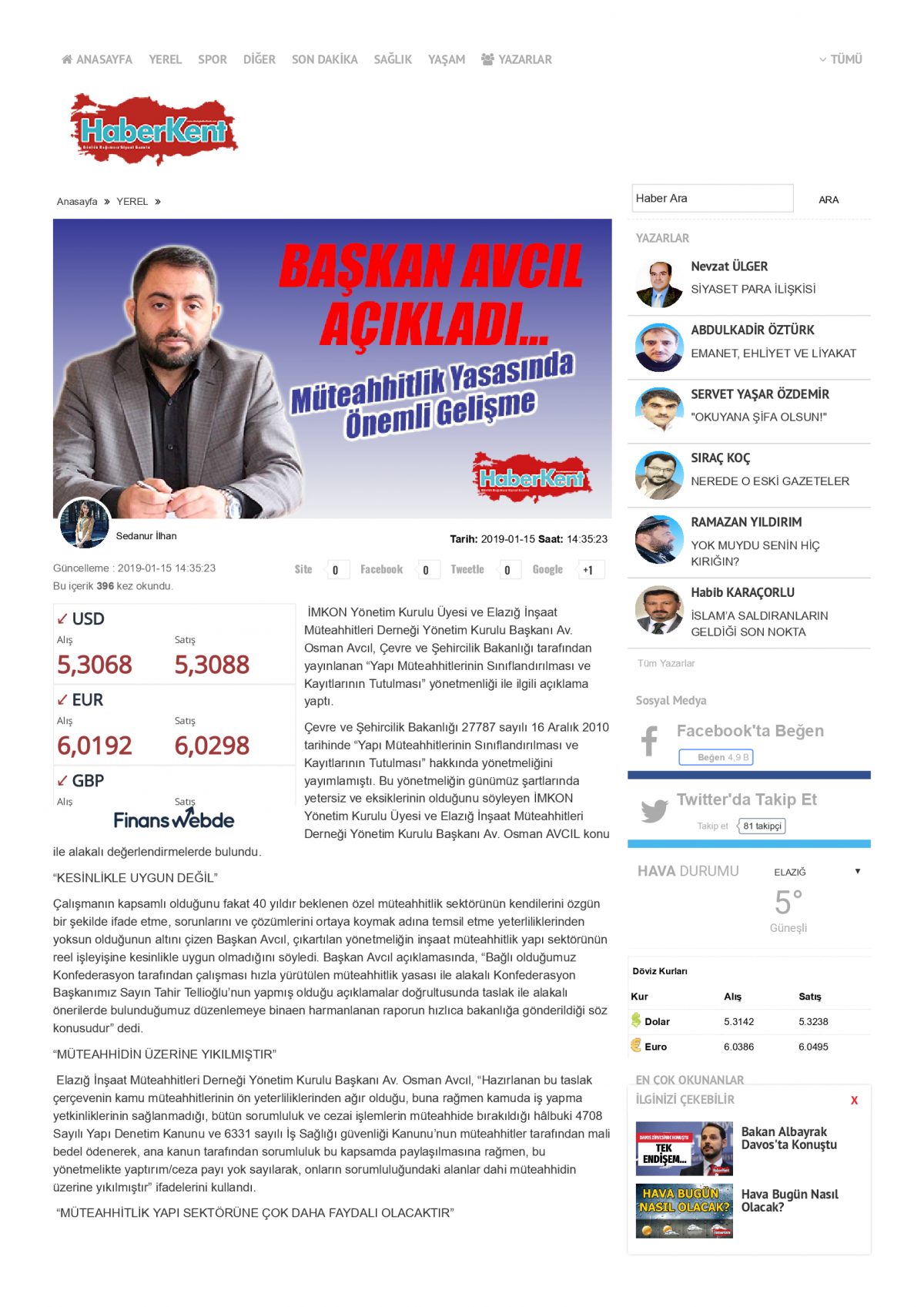 Elazığ’da İnşaat Müteahhitlerinin Bir Talebi Var!